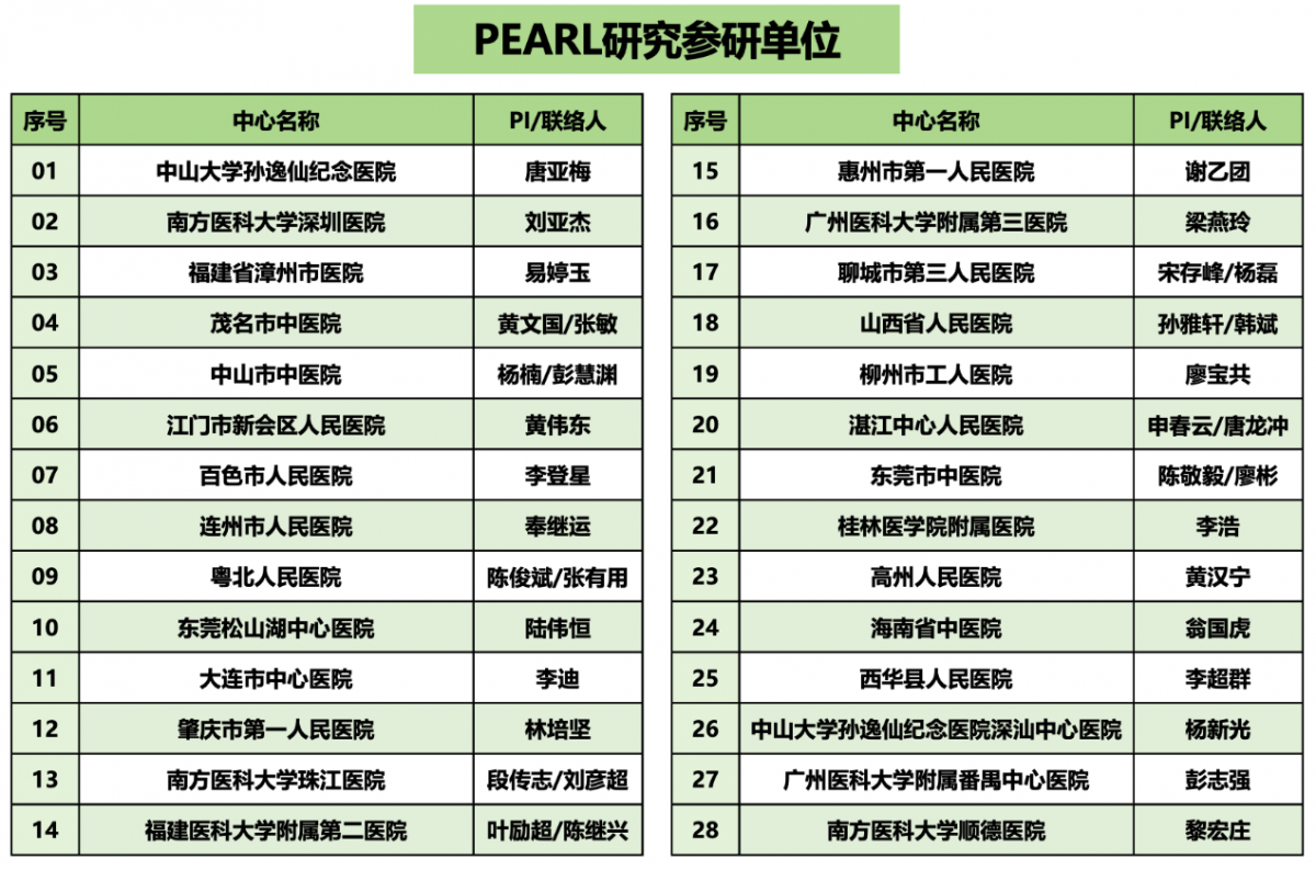 PEARL 研究的成功,也离不开全国 28 家参研中心的通力协作。从病例入组到数据收集,各中心团队紧密合作,确保研究高质量推进,向所有参研单位致以诚挚感谢。