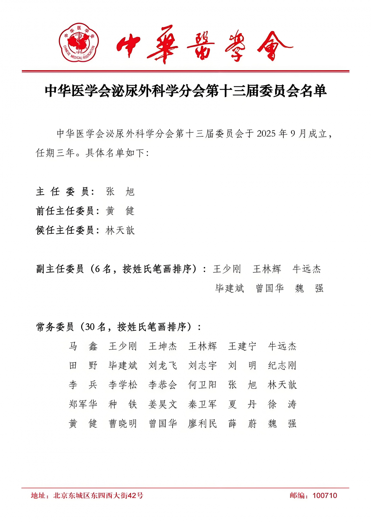 林天歆教授作为黄健教授团队的重要成员和我院自主培养的杰出代表,此次顺利当选候任主任委员,既是对其个人学术贡献和领导能力的充分肯定,也是我院泌尿外科“传帮带”优良传统的生动实践。他于1998年自中山医科大学临床医学七年制毕业后留院工作,在我院泌尿外科等科室前辈的指导与带动下,从一名住院医师逐步成长为学科带头人,充分展现了我院在高层次医学人才培养和学科建设方面的系统成效。