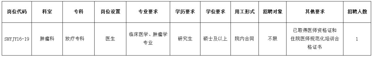中山大学孙逸仙纪念医院深汕中心医院因工作需要,面向社会公开招聘肿瘤科放疗专科合同医生岗位1名,现将有关事项公布如下: