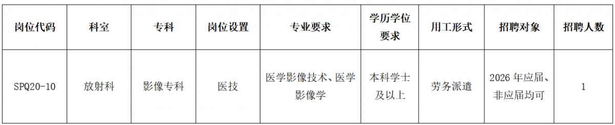 中山大学孙逸仙纪念医院深汕中心医院因工作需要,面向社会公开招聘放射科影像专科劳务派遣医技岗位1名,现将有关事项公布如下: