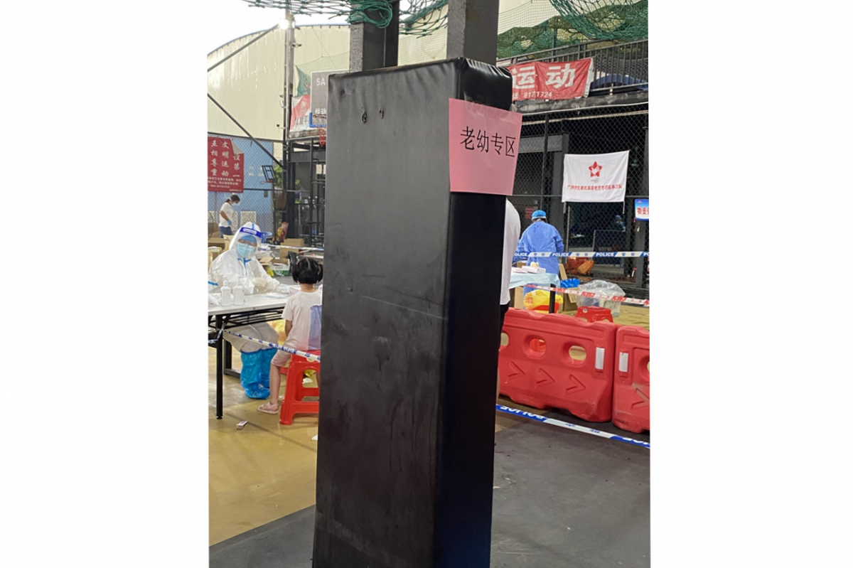 在采样人数较多的采样点,我院核酸采集医疗队还单独设置“老幼专区”,并为残疾人、孕妇、抱婴者、老年人等行动不便的人士开辟绿色通道,方便他们尽快完成核酸采样。