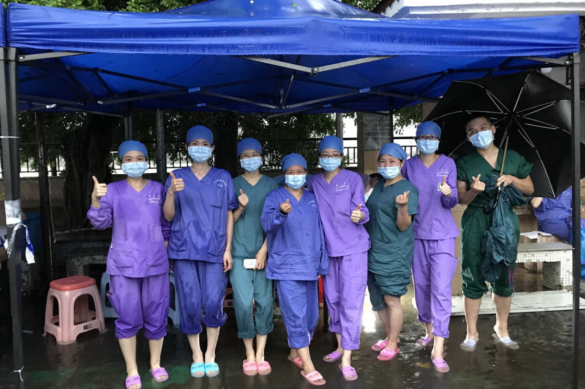 6月2日晚上大雨倾盆,我院核酸采样医疗队员、手术室刘守蕾护师还坚守在广州市荔湾区的采样点,而她前一天刚过完26岁生日。作为党员的刘守蕾曾有支援发热门诊的经历,对核酸采样工作比较熟悉,因此第一时间就加入了支援队伍。刘守蕾只是众多逸仙党员医护中的一员,无论狂风暴雨,还是烈日当头,无论白天还是黑夜,他们始终在坚守,从不言弃。