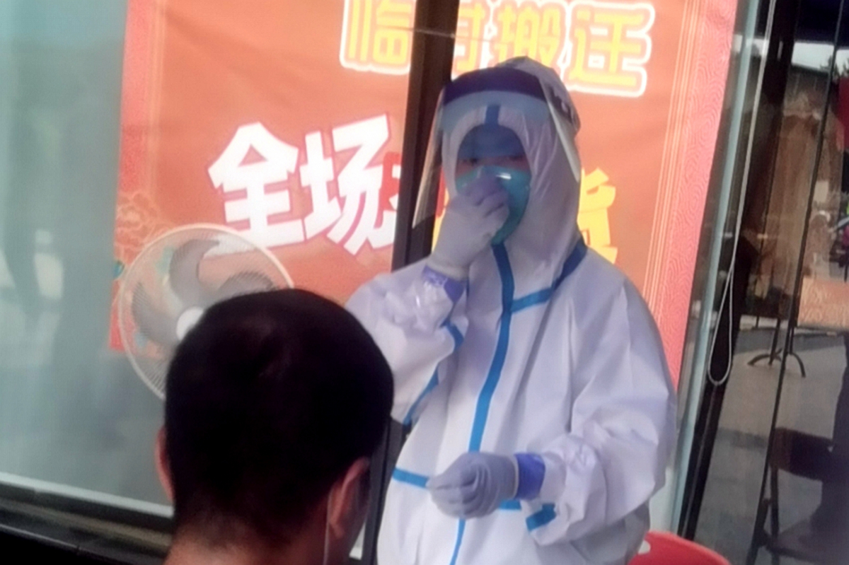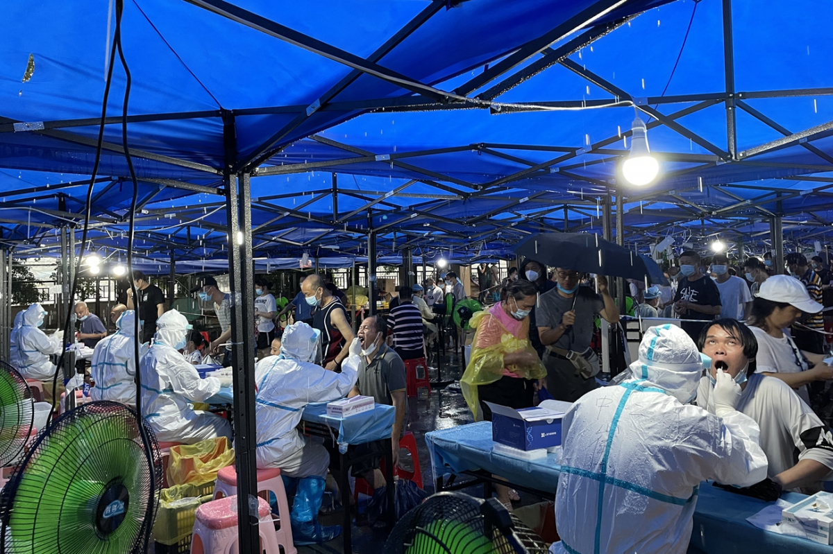 医疗队队员在雨中坚守,为群众进行核酸采样