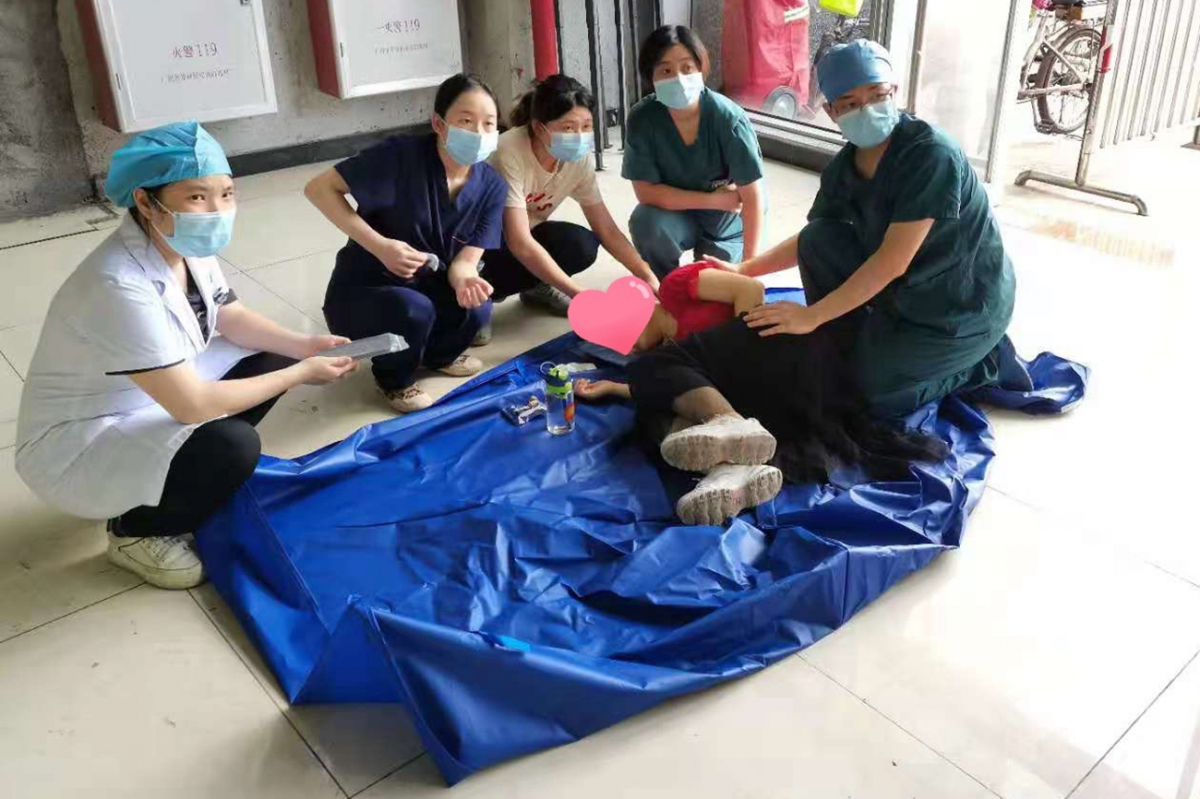 第四队队长郭明炎主治医师是一位有16年党龄的党员,6月3日中午,当他带领着20人队伍在荔湾区桥中街执行采样任务时,发现刚做完核酸采样的21岁吴女士突然晕厥。郭明炎主治医师和两位队友——生殖中心张昌婷主管护师、儿科侯凯翔护士,立即对吴女士进行急救处理。