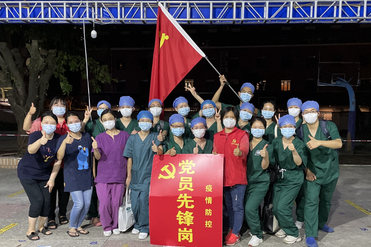 我院王景峰书记代表医院党委发出号召,希望广大党员、干部能够更加积极地投入到疫情防控第一线,充分发挥党员的先锋模范作用,不负党和人民重托。在医院党委的统一领导下,各党支部充分发挥战斗堡垒作用,积极动员党员干部和医护人员奋战在检测防控、疫苗接种、医疗救治、科研攻关等各个战场上。特别是一批批医护职工自愿请战,积极参与到核酸检测支援工作中。支援期间,医疗队员们深刻感受到党组织的凝聚力和组织力,感受到党员同志身先士卒的担当精神。102名队员向党组织递交了入党申请书,用实际行动向党组织靠拢。