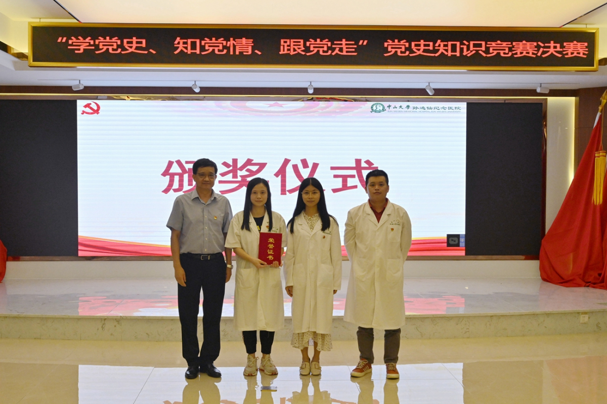 经过必答题、抢答题和附加题的激烈角逐后,南校园门诊部党支部荣获一等奖;医务党支部、口腔科党支部荣获二等奖;重症医学科党支部、血液内科及输血科党支部、麻醉科党支部荣获三等奖。王景峰书记、刘超副院长、刘东红党委委员分别为获奖队伍颁奖。