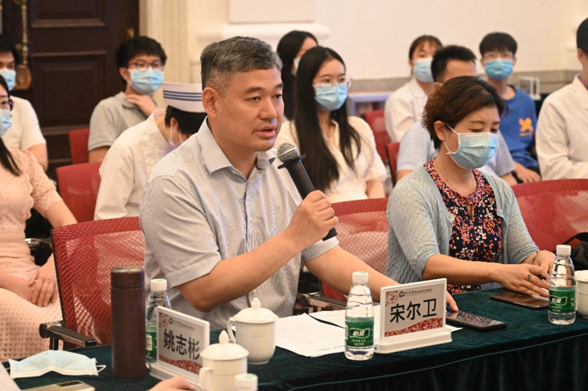 首先,宋尔卫院长阐述了人文精神所蕴含的多种内涵。他表示,人文和艺术的熏陶,可以提高自身素养和领悟力,开拓眼界,开阔包容的胸怀,提高医患沟通能力。希望通过这场交流座谈会激发思维碰撞,促进医学教育发展改革。