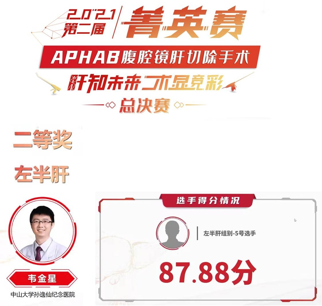 韦金星主治医师荣获“第二届APHAB腹腔镜肝切除手术菁英赛”全国总决赛二等奖