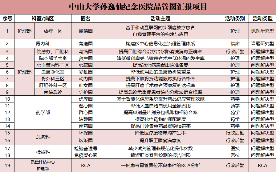 汇报会由张丹副教授进行点评指导,同时邀请了医务部徐凤琴主任、护理部教研室冯晓玲主任、护理部毛晓群副主任、药学部邱凯锋副主任参与打分,由质量评估中心徐碧滢副主任主持。共有19个品管圈项目参加汇报,项目类型包括课题研究型、问题解决型和RCA,参与科室涵盖了临床、医技和行政后勤。经过各项目品管圈成员的精心准备以及前期的院内辅导,各项目从题材的选定到现场汇报演示都展现出较高的水平。张丹副教授结合自身在质量管理工具应用上的丰富经验,对案例进行深入的点评与指导,参会者纷纷表示获益匪浅。