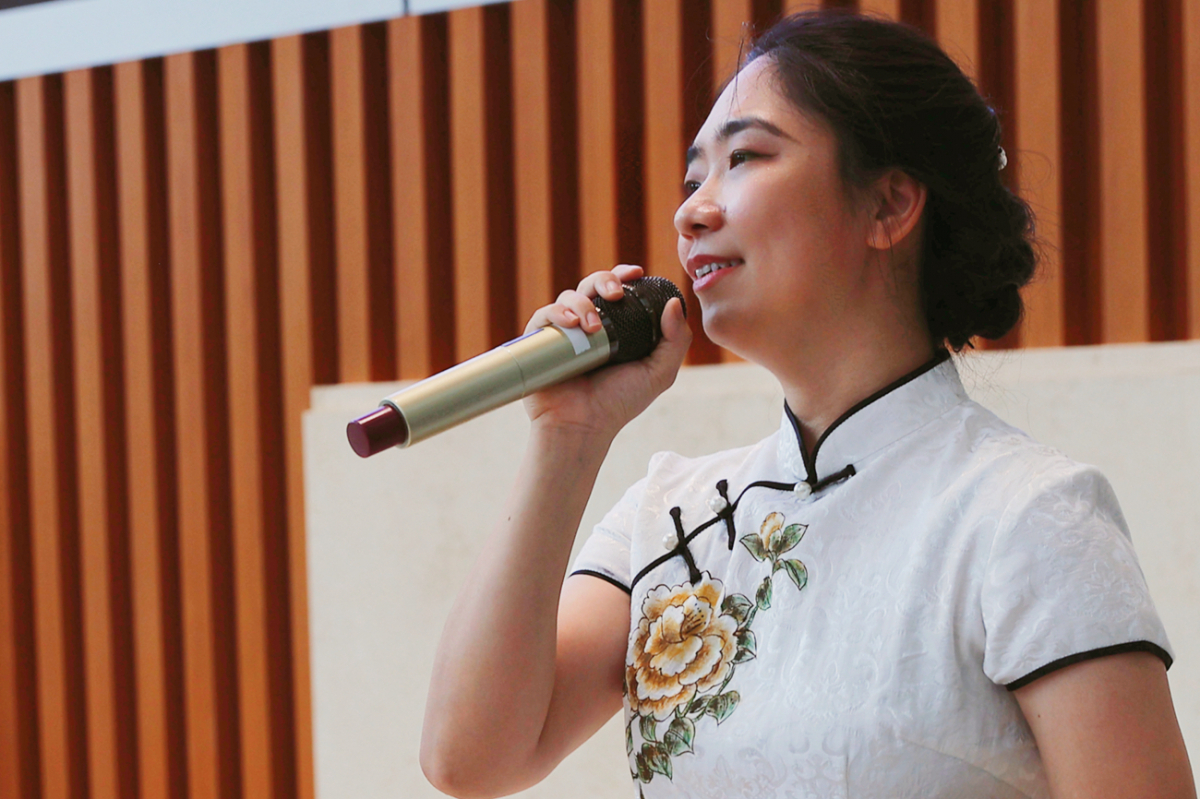 日常工作中,医务工作者穿梭在病房患者之间,尽心守护着患者的健康。工作之余,他们也有着对生活的热爱和追求。基础与转化医学研究中心研究员蔡佩娥教授在现场舞台上,演唱了一首《我只在乎你》。歌曲高潮时,现场观众纷纷一起轻轻合唱。