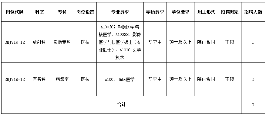 2.具有病案室工作经验者,年龄可适当放宽。 (此条对应医务科病案室合同医技岗位)