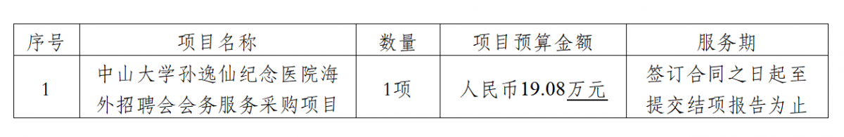 一、项目名称:中山大学孙逸仙纪念医院海外招聘会会务服务采购项目