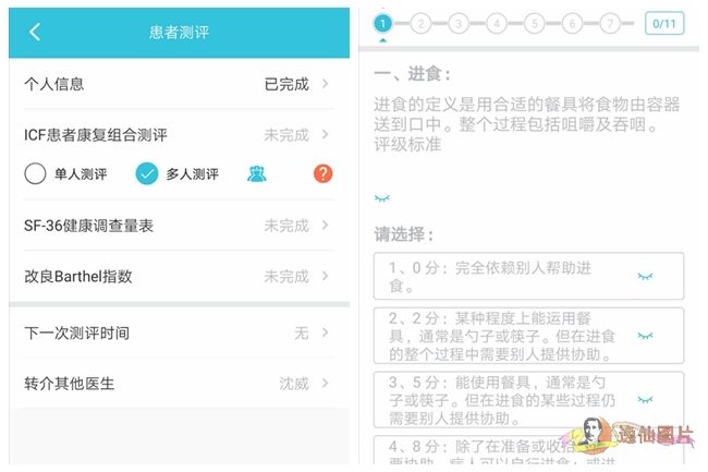 ICF康复组合软件主要为医护人员使用的移动端。通过对康复患者ICF相关数据电子化采集,实现不同医院功能数据比较、分析和共享。这一软件是燕铁斌教授团队在前期ICF-RS量化标准研究的基础上,自主开发的一款便于临床应用的app版本,其目的是在保证能够有效全面评估患者功能的同时,尽可能简化临床工作者的评估流程。目前,ICF-RS量化标准的最终版本已经通过了民政部审核并立项,列入了《2019年民政部标准制定计划》(民办发[2019]23号),正式提交给国家标准委员会,建议作为国家标准发布。而ICF-RS软件的发布对促进世界卫生组织发布的ICF康复组合量化标准在各级康复医疗机构规范化运用和推广、促进跨学科多专业协作和融合、推进国内康复医学技术与国际接轨都具有积极的意义。(文/图 康复科丁丽娟、章马兰)