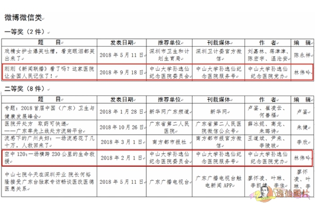 由广东省卫生健康委、广东省新闻工作者协会主办的“广东省第五届卫生健康好新闻评选活动”日前揭晓。我院作品《刚刚的〈新闻联播〉看了吗?这家医院让全国人民记住了!》荣获微博微信类一等奖,《空中120:一场横跨230公里的生命救援》获微博微信类二等奖!
