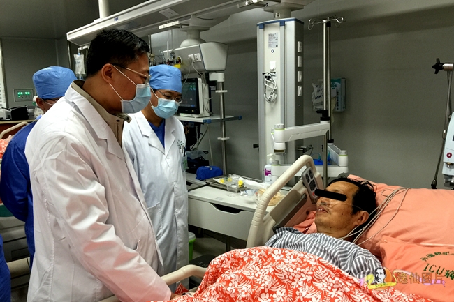 经会诊后,患者于11时转入ICU进一步抢救治疗。转入时患者神志深昏迷,双侧瞳孔散大,对光反射消失,血压50/30mmHg,血氧70%,全身发绀,严重休克。我科立即予呼吸机支持、建立大静脉通道,补液升压、纠正酸中毒等抗休克治疗。ICU主任何志捷教授组织全科人员对该患者进行全面抢救,并通知全院各专科(心内科、呼吸科、心外科等)进行大会诊指导治疗。患者当天晚上出现急性肾功能衰竭,ICU王吉文副主任医师、陈亮主治医师、喻文医师、周林医师下班后仍一直守候在病床边全力抢救,对该患者进行紧急床边血液净化治疗。经过ICU医护人员团结协作及不懈努力,该患者生命体征逐步稳定,升压药物逐步撤出,11月16日患者神志逐渐清楚,无明显复苏后并发症。17日拔除气管插管,经过适当康复训练,患者于25日出院。