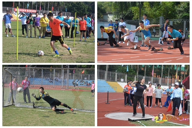 11月22日,我校2015年体育节在中山大学南校区顺利举行。当天上午,全校35个代表方队齐聚中大北门广场进行环校长跑起跑仪式。我院方队身穿红灰运动服在英东田径场参加开幕式并接受检阅,展现了良好的精神风貌与昂扬的斗志。我院运动健儿参加了教工篮球、足球技能比赛、托球接力、5人6足跑、以及田径等比赛项目。秉承“求精奋进”的精神,运动员们以矫健的身手,灵活娴熟的技术赛出了水平、赛出了精彩,获得了道德风尚奖及教工组团体总分第四名的好成绩。(文/图 工会 党办)