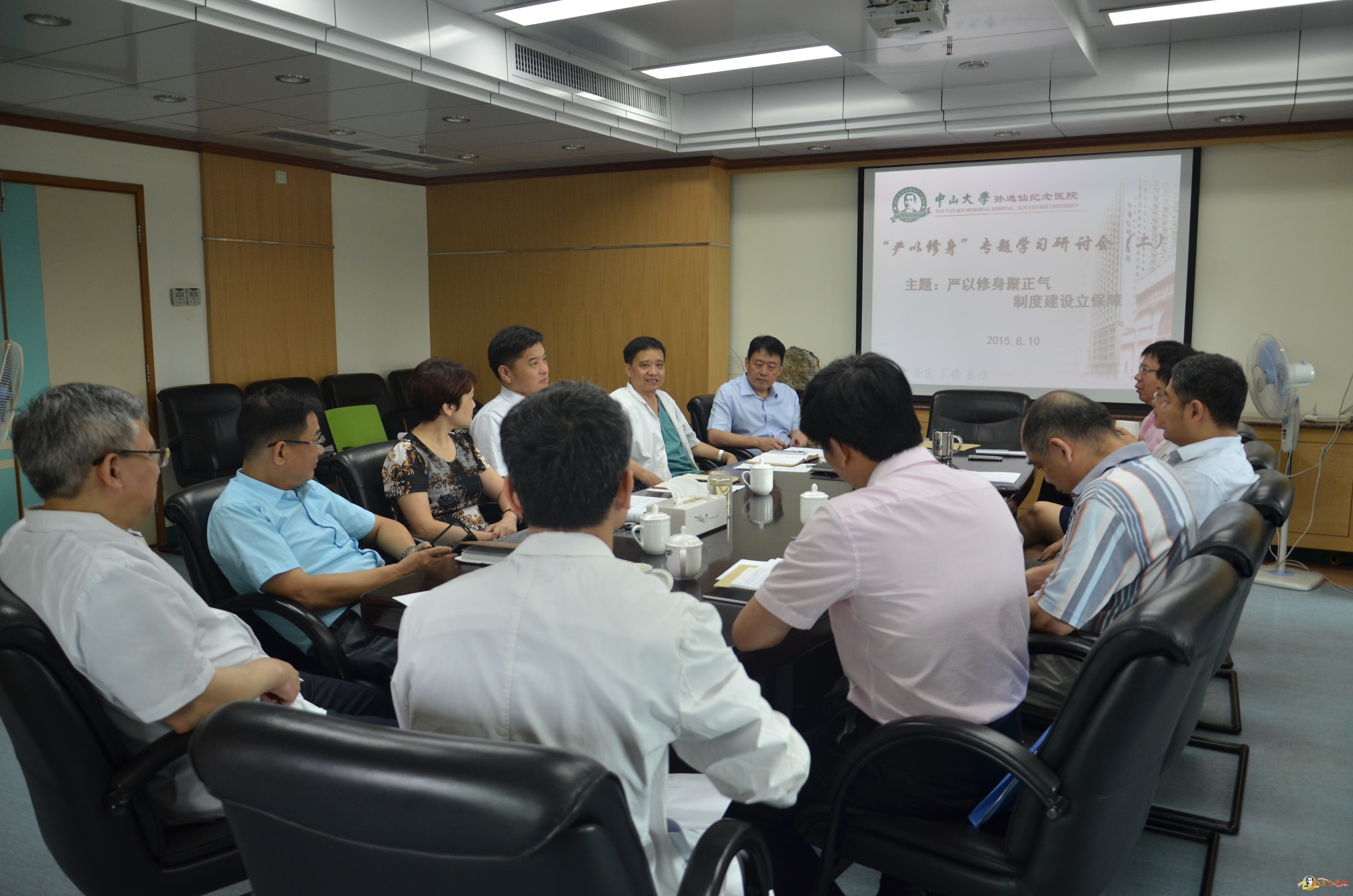 党委副书记、纪委书记赵婉文作中心发言。她指出,“三严三实”中,“严以修身”居首位。要做到“严以修身”,根本在于坚定理想信念,核心在于锤炼坚强党性,关键在于提升道德修养。每个共产党员必须坚守对马克思主义的信仰、对社会主义和共产主义的信念。党员干部应从自身严起,慎独慎微,洁身自爱,守住清贫,不断通过后天的自我磨炼、自我改造、自我完善,永葆纯洁党性。赵婉文副书记还强调了制度建设的重要性。“他律”与“自律”并重,“他律”强调立规矩,“自律”强调守规矩。最后,借用中大校长罗俊院士提出的“四有原则”,赵婉文副书记要求党员干部做事要有依据、有流程、有记录、有效率,认真查摆实际工作中“不严不实”的问题。