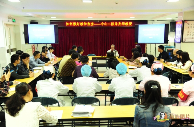 上午,在“如何做好临床教学查房”的讲座上,朱兆华教授结合自身丰富的临床教学经验,通过典型病例分析,详细阐述了教学查房需要注意的各个方面,条理清晰,目标明确。花都区第二人民医院赖志寿院长及该院中层干部、各科室教学骨干、带教老师,约50人聆听了讲座。