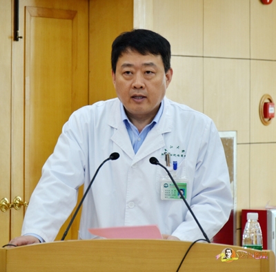 陈明春教授作为获奖代表致辞,他用了“感谢”、“责任”和“行动”三个词来概括自己的获奖心情:对学校、医院领导和同事的关心和支持表示衷心的感谢;医生的责任就是为患者服务,这个奖项是对自己三十年来履行这份责任的充分肯定;他表示将用自己的实际行动,更好地为患者服务。