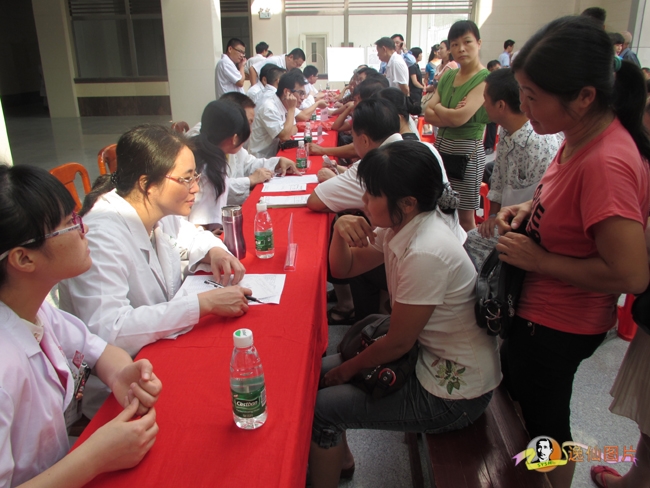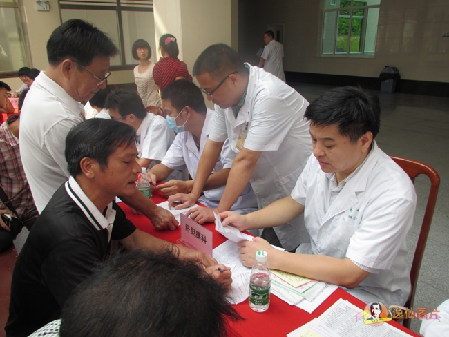 30日上午9时,陈汝福副院长、泌尿外科韩金利副主任医师、呼吸科吕志强副教授、心血管罗年桑副主任医师、妇产科谭剑平副主任医师、肿瘤科李志花副教授、皮肤科陈建浩主治医师、耳鼻喉科杨海弟主治医师共7位专家在平远县人民医院新大楼一楼大厅举行送医送药的大型义诊活动。当地老百姓一大早就从各个乡镇赶到县人民医院的义诊现场,自觉地排起了长长的队伍等候。由于新大楼一楼大厅设备还没有完善,没有空调和风扇,且当日上午酷热,气温高达36度,义诊大厅像个大蒸笼,把专家们闷得汗流浃背,但是专家们还是以苦为乐,笑称免费焗桑拿,依旧细心地为前来义诊的老百姓一一看诊。当天义诊时间两个多小时,接诊病人180多人次。