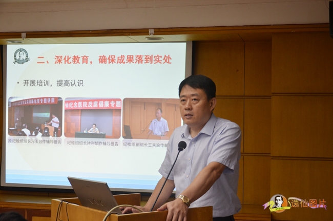 沈慧勇院长就目前我院开展的专项治理工作进行了汇报。重点从组织领导、宣传教育、制度建设、查办案件等几个方面阐述了我院在第二阶段专项治理工作中的举措。