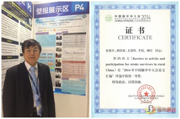 我院康复科燕铁斌教授课题组的文章《Barriers to activity and participation for stroke survivors in the rural areas of China》(《中国乡村脑卒中患者活动与社会参与障碍调研》,第一作者张莉芳,通讯作者燕铁斌)获得一等奖,该论文由我院、中山大学护理学院、广东省红十字会及广州白云山奇星药业有限公司共同合作,是对广东省农村脑卒中患者生存状况进行横断面调查研究的部分成果。