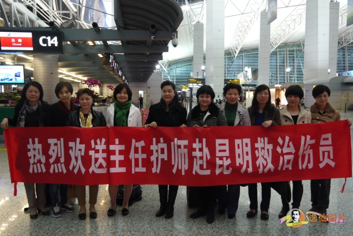 当晚9点,我省选派的护理专家组成员一行六从白云机场登机前往昆明。广东省卫计委彭刚艺处长、中山大学医管处汪宗芳副处长、我院护理部冯晓玲主任、欧阳霞副主任在机场为护理专家们送行。